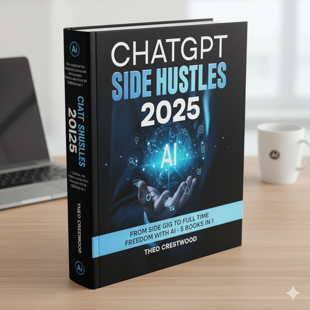 ChatGPT Side Hustles 2025: From Side Gig to Full Time Freedom with AI — 5 Books in 1 is a complete and forward-thinking guide that captures the revolutionary changes brought by artificial intelligence in the world of entrepreneurship and online income. Designed for freelancers, digital creators, and anyone seeking financial independence, this collection explores how ChatGPT and other AI tools can help transform side projects into sustainable, full-time careers. The book is not just theoretical; it’s a practical roadmap filled with real-world applications, tested strategies, and step-by-step methods to master the new digital economy. As AI reshapes the workforce, this book stands as a manual for those ready to take control of their future through automation, creativity, and innovation.